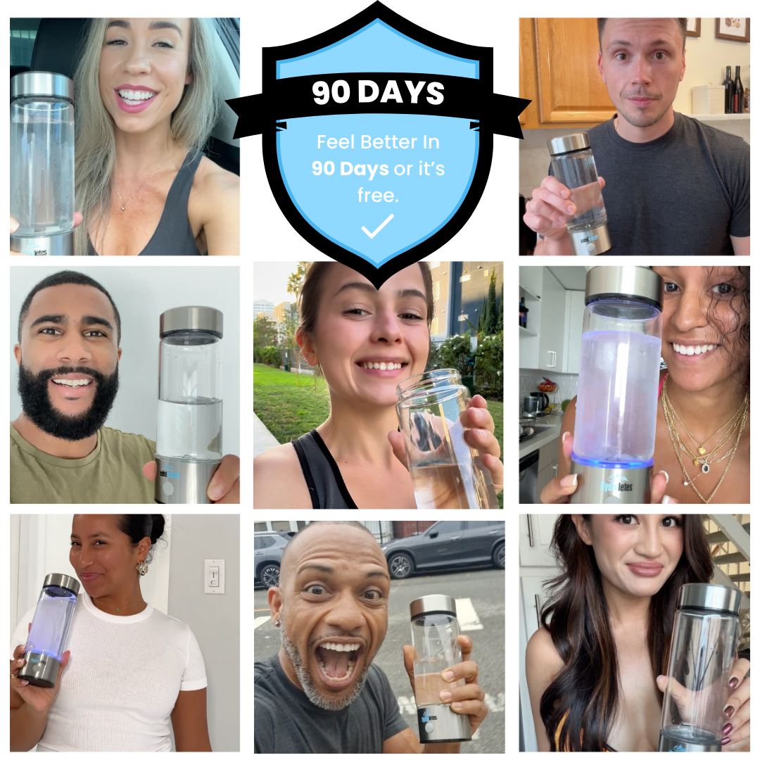 Our 90 day trial comes with every bottle. If you don't see any health benefits after 90 days of drinking our hydrogen water, we will refund you completely.